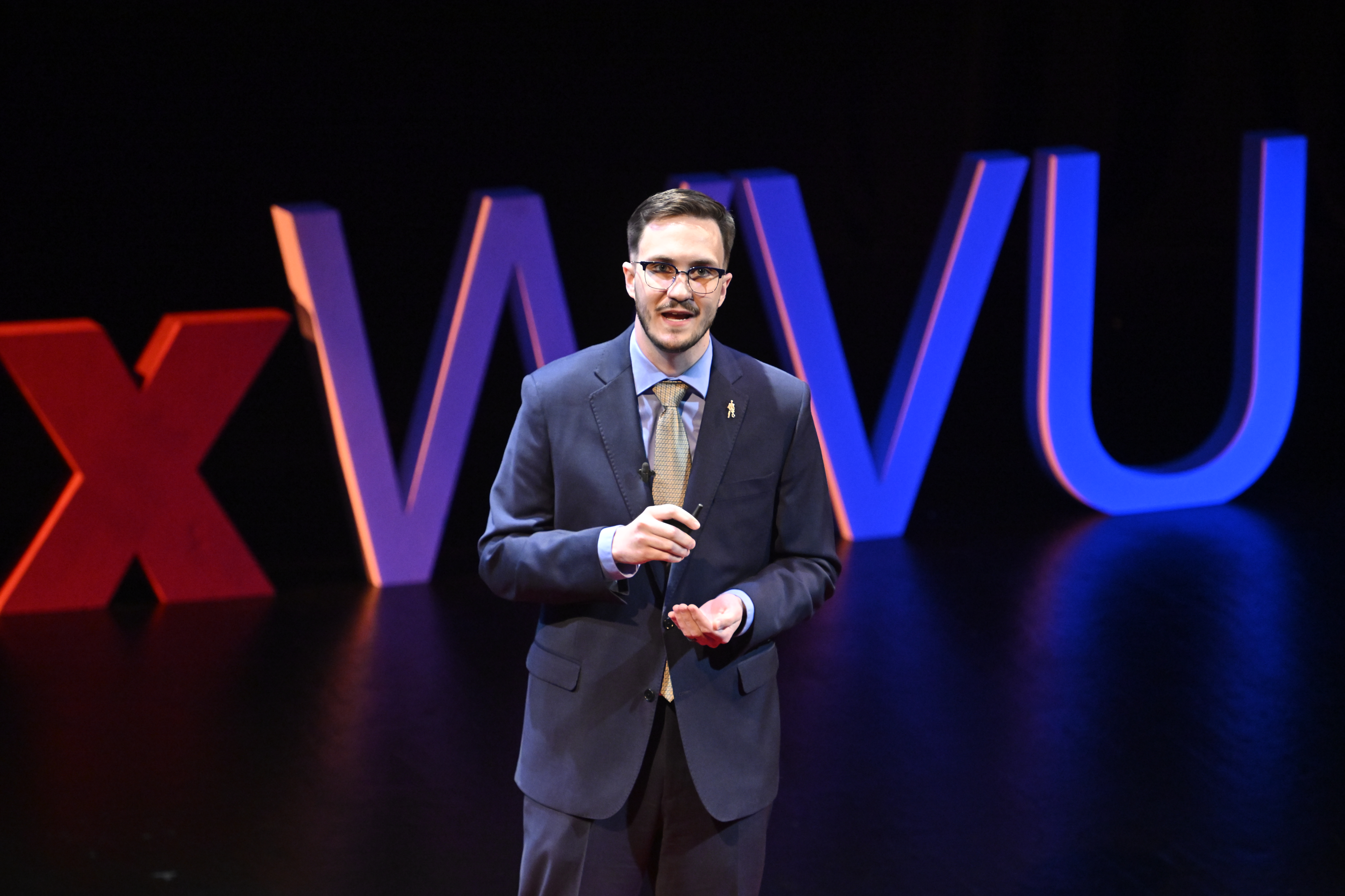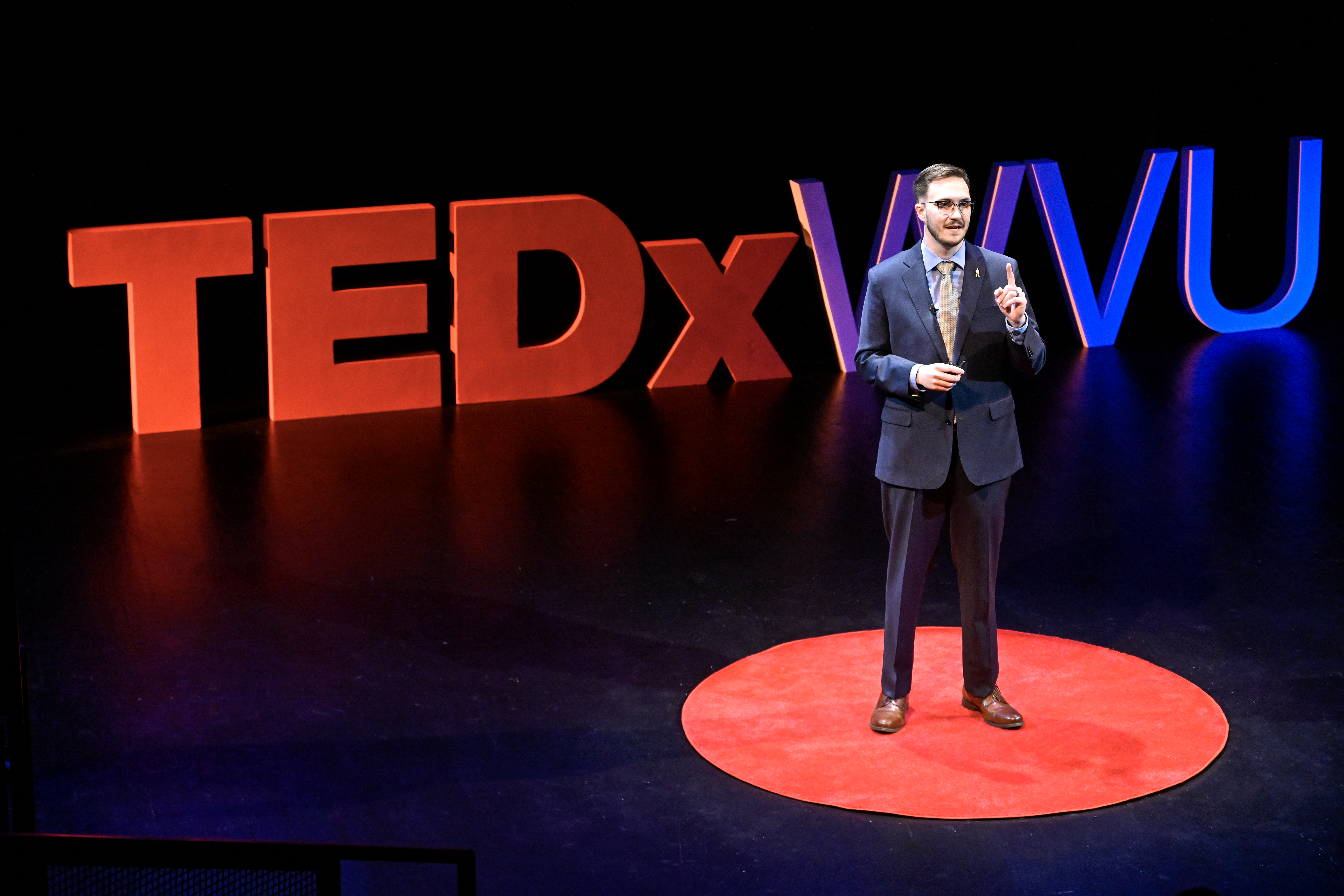 From classroom to stage, Joshua Meadows, service assistant professor and executive director of Data Driven WV in the WVU John Chambers College of Business and Economics, works from the same mission — turning education into opportunity. His work at WVU connects applied AI and data analytics to real-world impact across West Virginia. (WVU Photo/Jennifer Shephard)